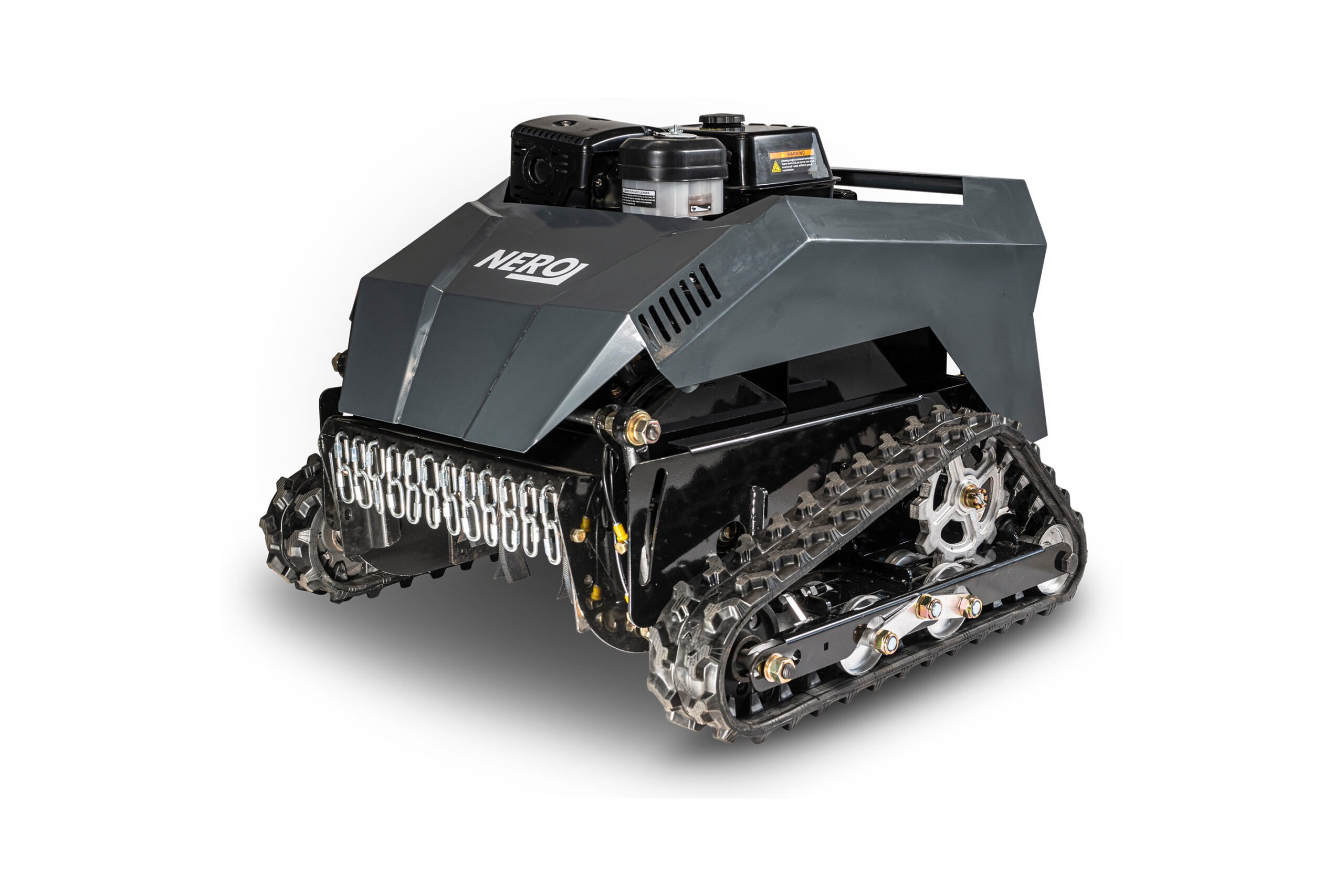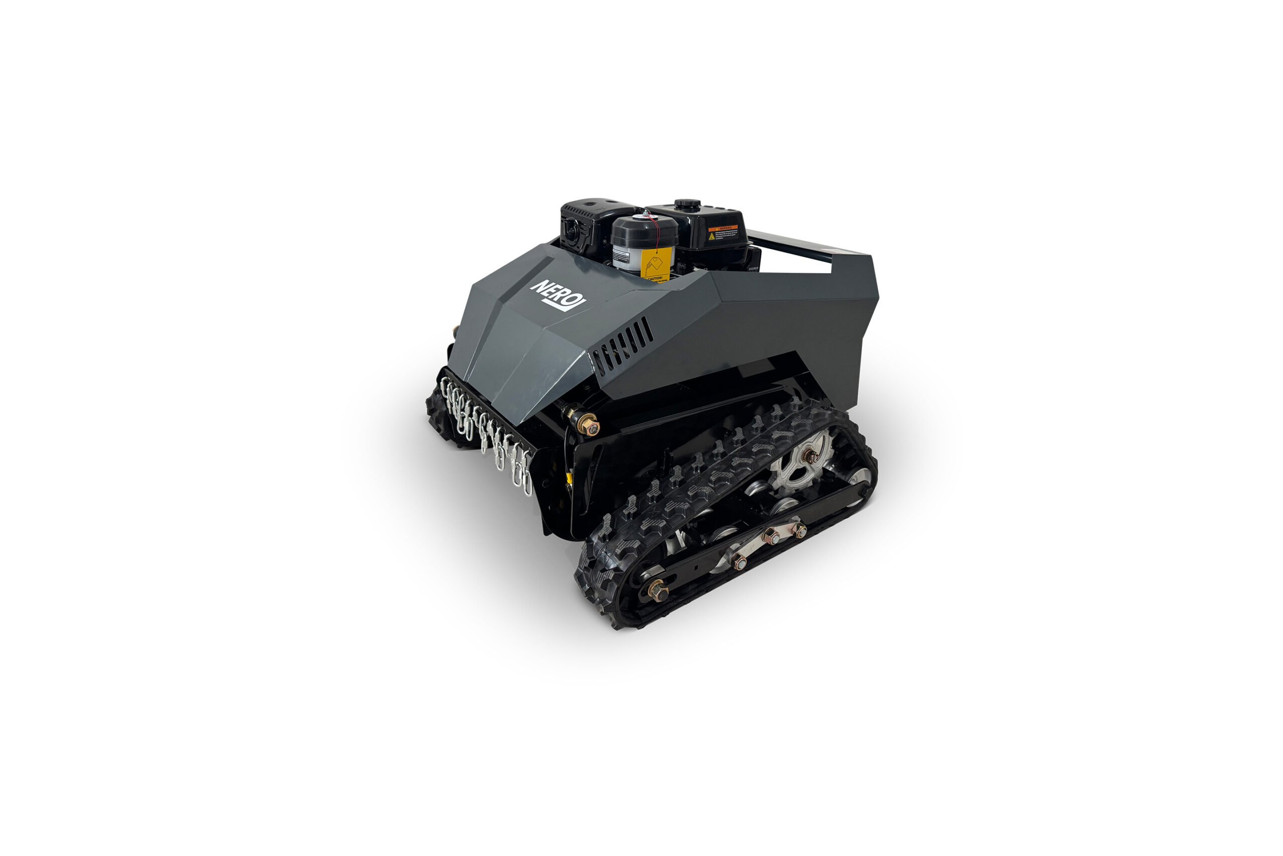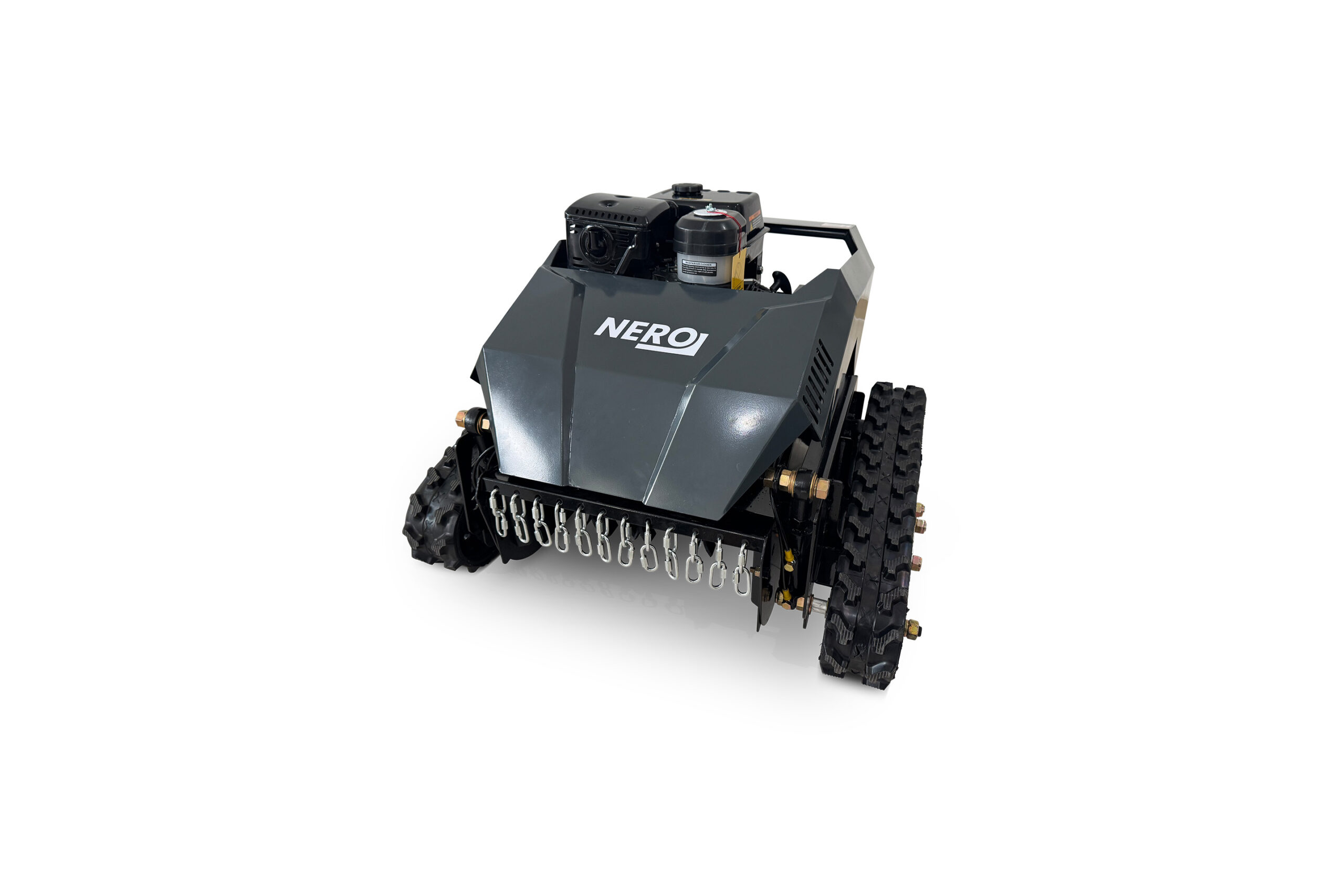 Der Nero RSM-500GT wurde speziell für Gelände entwickelt, bei denen herkömmliche Mulcher an ihre Grenzen stoßen. Mit einer kompakten Arbeitsbreite von 50 cm und einem vergleichsweise geringen Eigengewicht von 210 kg ist er die erste Wahl für verwinkelte Gärten, schmale Waldpfade oder zugewachsene Durchgänge. Das Herzstück bildet ein zuverlässiger 13 PS Loncin-Benzinmotor, der das Messerwerk antreibt, während zwei 600W Brushless-Elektromotoren für den präzisen Kettenantrieb sorgen. Dank der intelligenten Fernsteuerung mit einer Reichweite von bis zu 500 Metern bleibt der Bediener stets außerhalb der Gefahrenzone, selbst wenn die Maschine an steilen Böschungen mit bis zu 40° Neigung arbeitet. Das hybride System lädt die 24V-Batterie während des Betriebs über den integrierten 1500W Generator selbstständig nach, was lange Einsatzzeiten ohne externe Ladestopps ermöglicht.