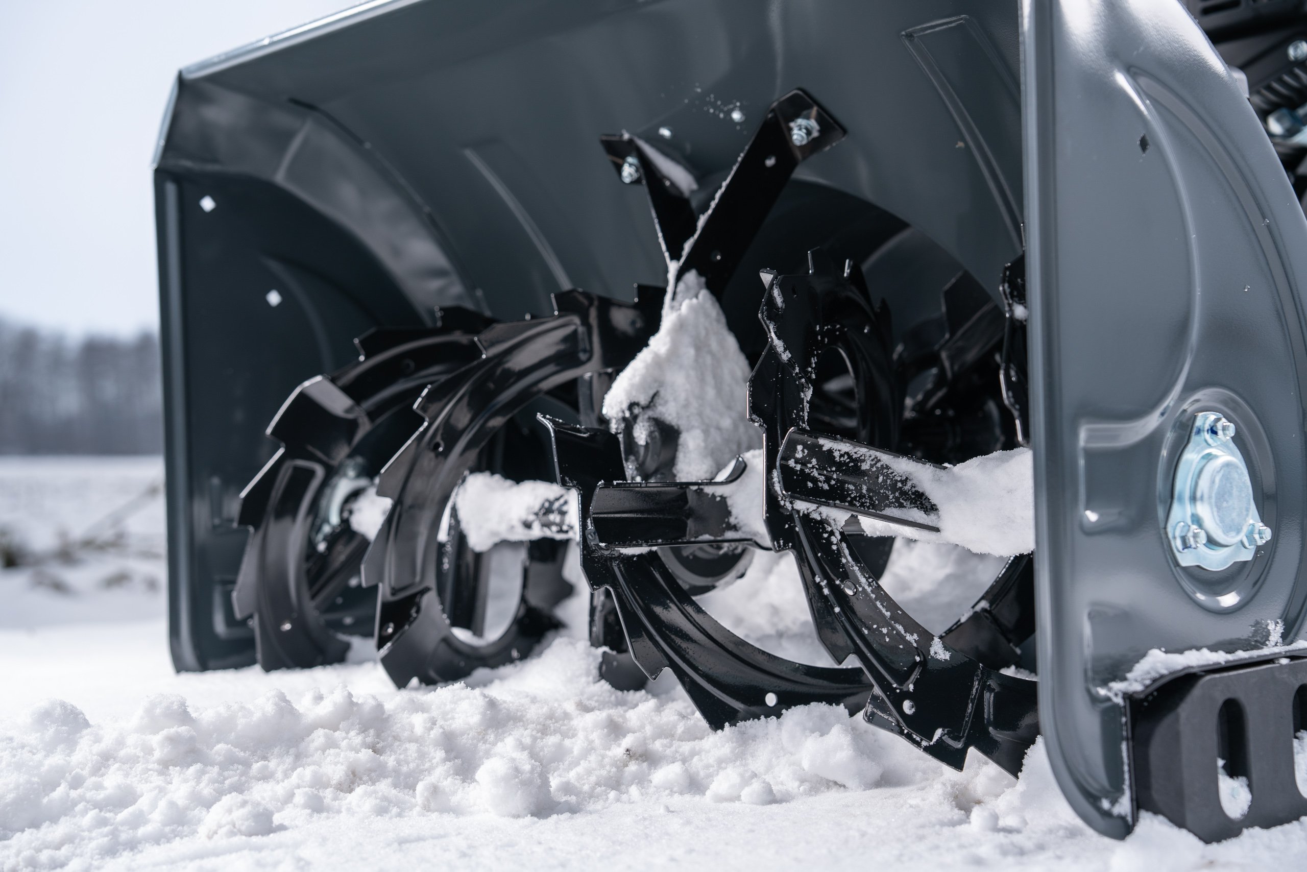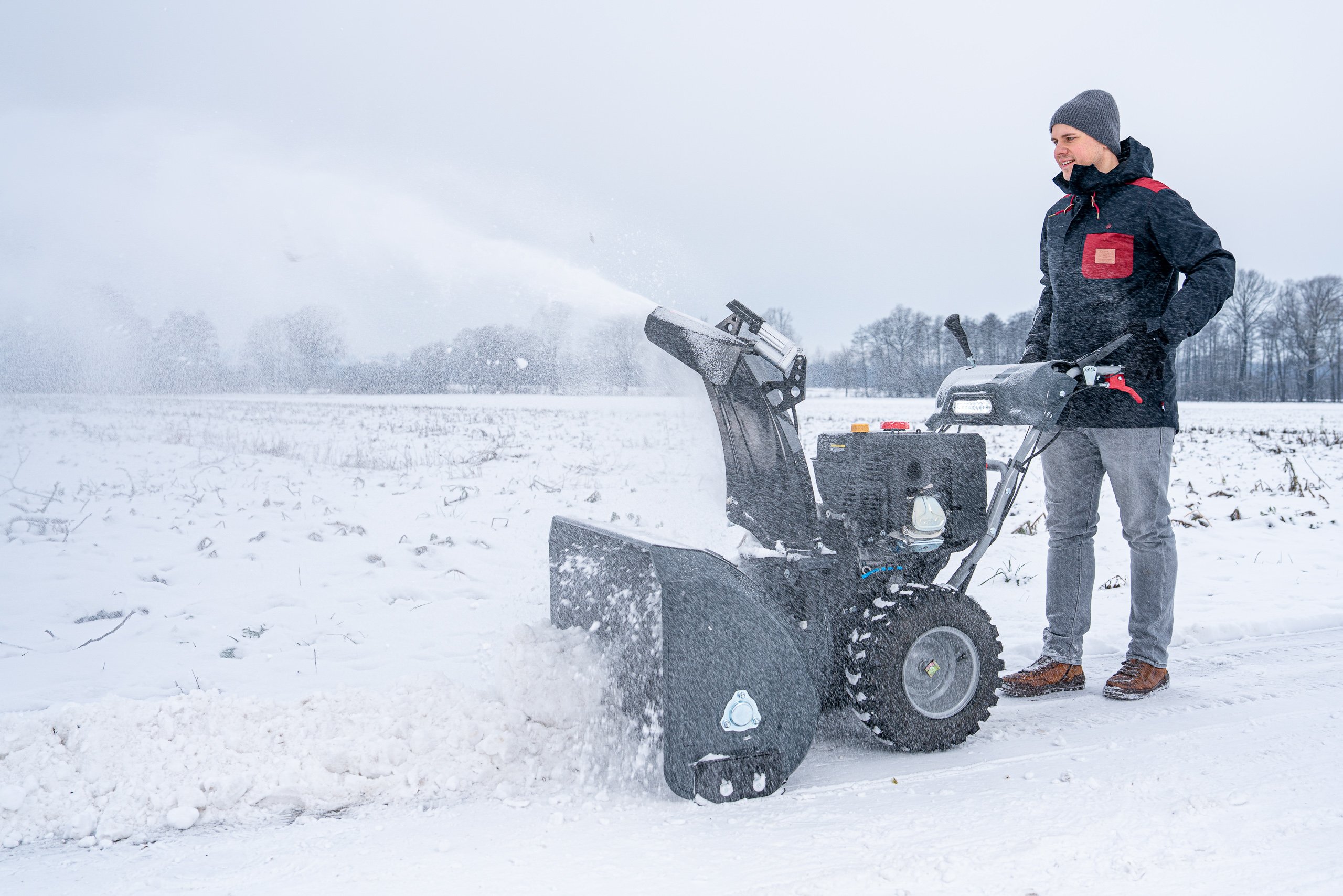 - Drehbarer Auswurfschacht wirft Schnee bis zu 15 Meter weit, für gezieltes Ableiten