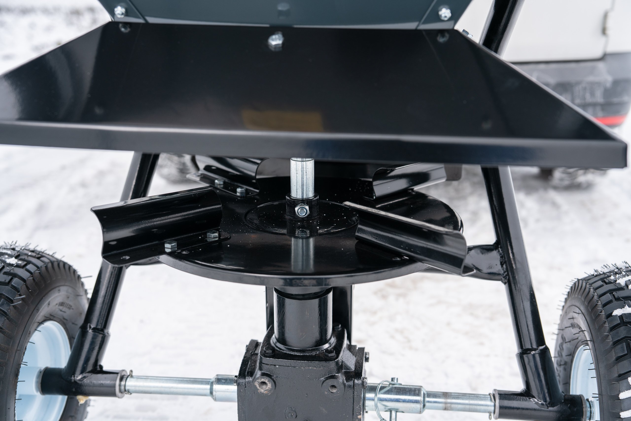 - 200 Liter Fassungsvermögen erlaubt das Streuen großer Mengen Streugut